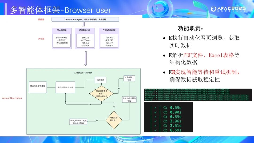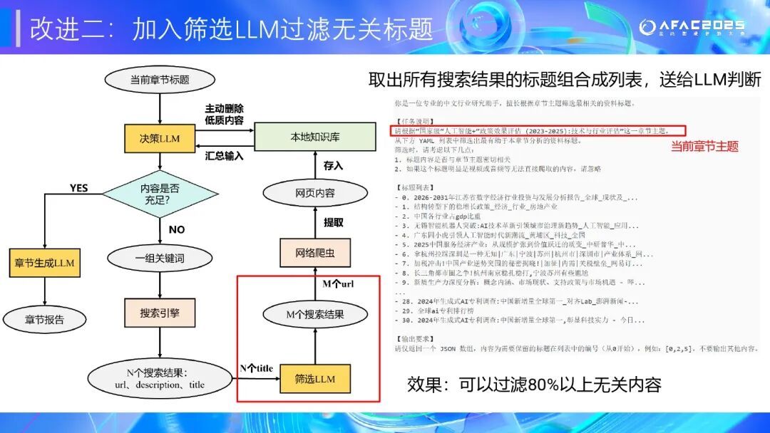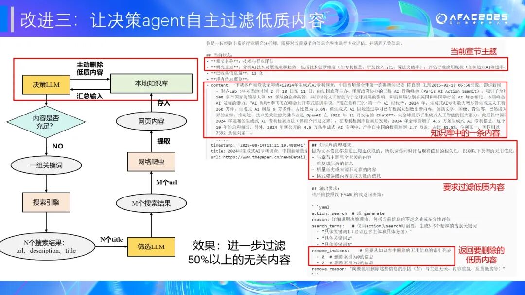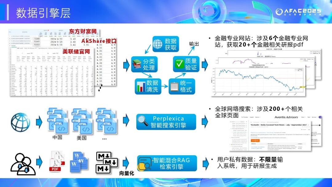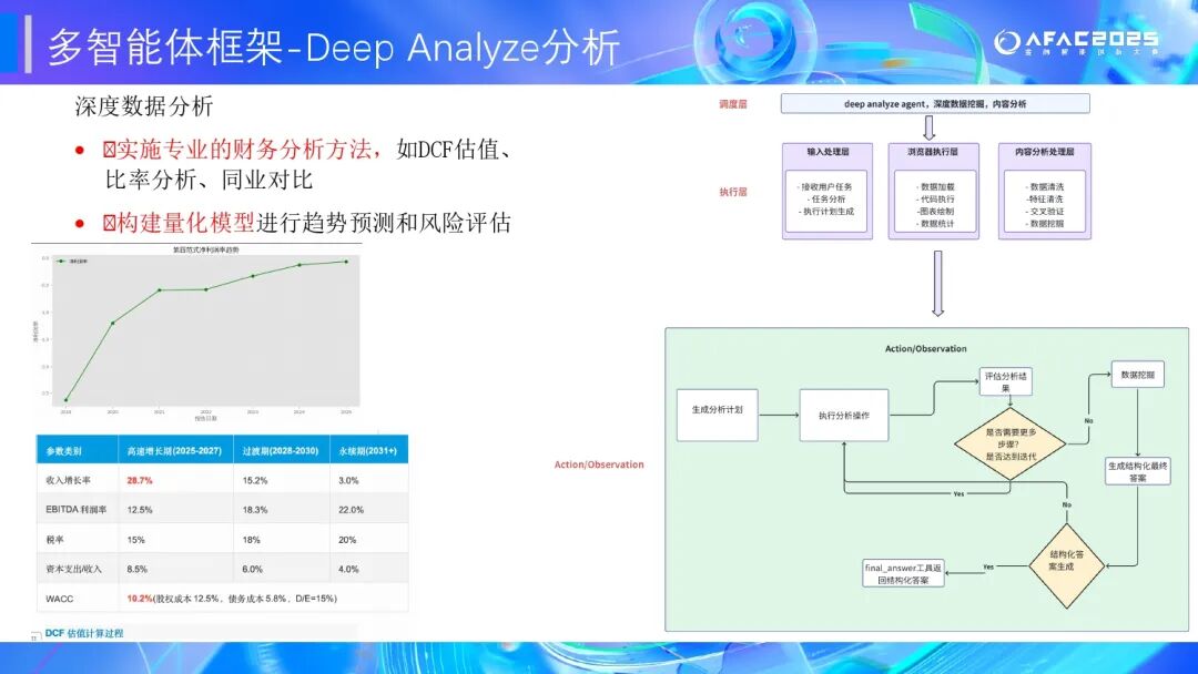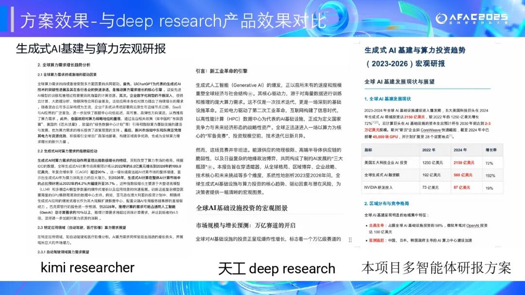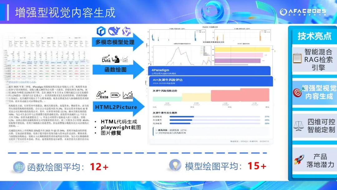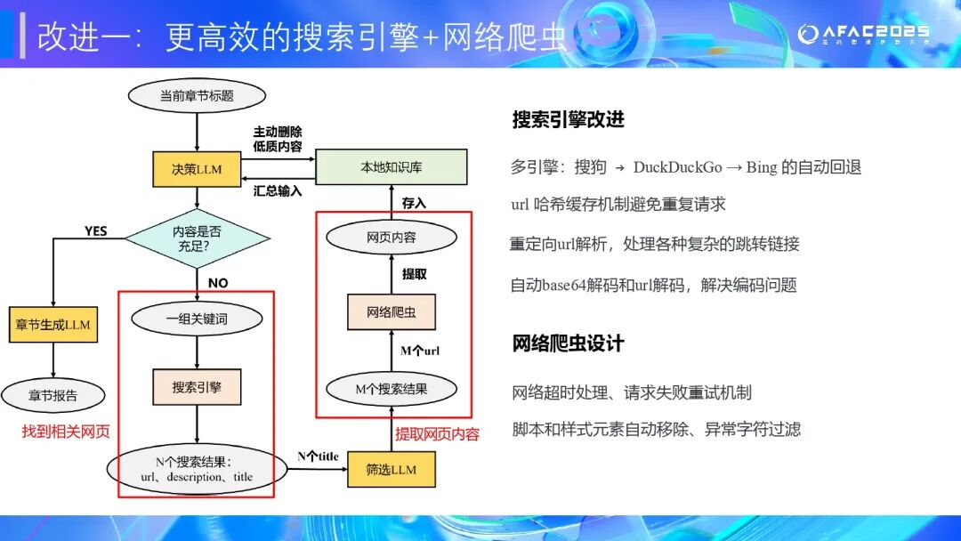 多Agent协同:通过多Agent分工与链式推理完成端到端流程,自动拆解任务并分阶段调用功能模块(如信息检索、图表生成、内容撰写与审查),包含自检与反馈循环;