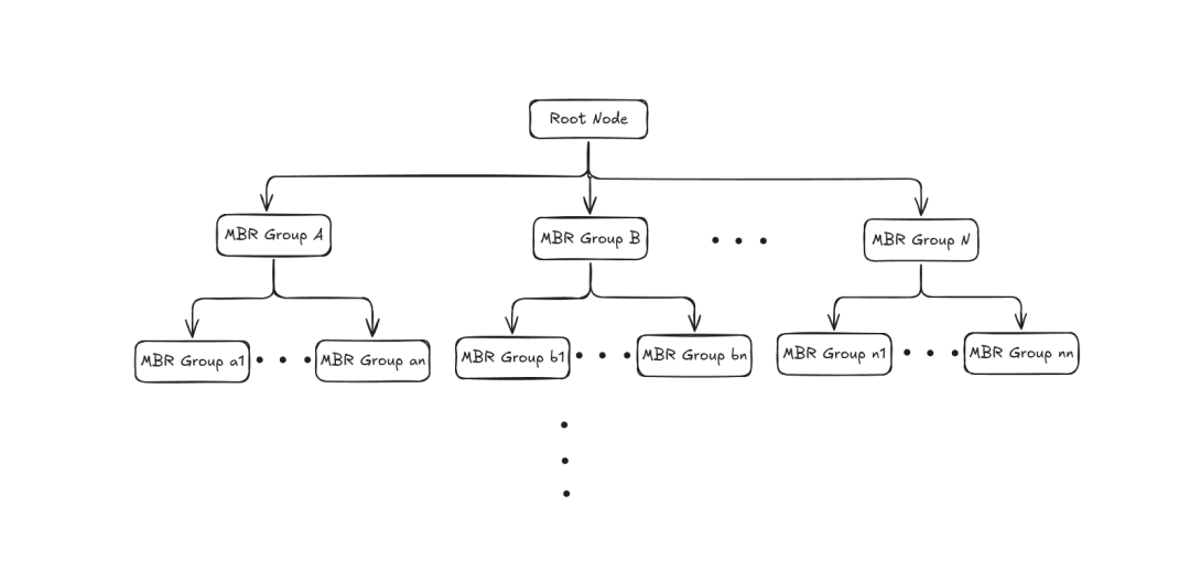 R-Tree 是专为多维空间数据(尤其是 Geometry 几何类型,如点、线、面、多边形等)设计的平衡树索引结构,其核心逻辑是通过最小边界矩形(MBR, Minimum Bounding Rectangle)把空间对象分组,形成类似 B-Tree 的层级结构,通过空间近似与分层索引解决几何对象的高效检索问题。
