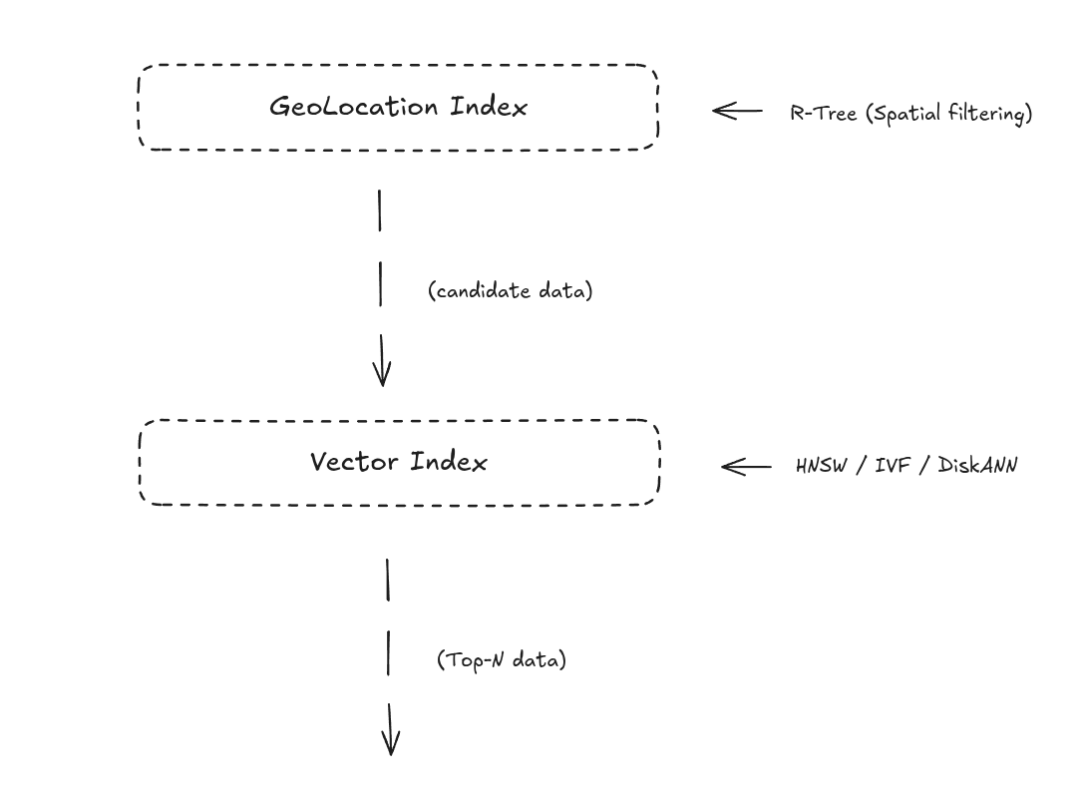 基于Geometry+ R-Tree 能力,Zilliz 在打造Milvus的过程中,会将 向量索引 与 地理索引 结合使用: