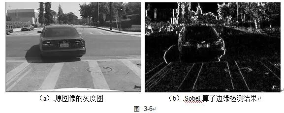 式3-9中,*表示二维卷积运算。这里建立的坐标系在x坐标方向向右,y坐标方向向下,在图像中的每个点,用式3-8描述总梯度大小及方向。用Sobel算子进行边缘检测结果见图 3‑6所示。