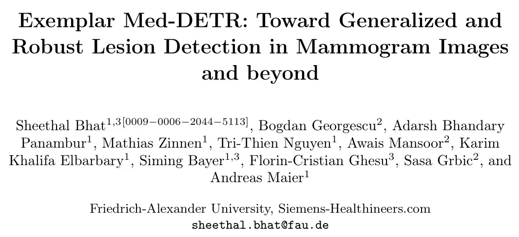 [1]. Exemplar Med-DETR: Toward Generalized and Robust Lesion Detection in Mammogram Images. and beyond