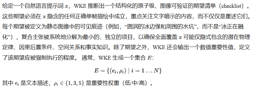 世界知识提取器:将提示词分解为原子化的、可图像验证的期望。