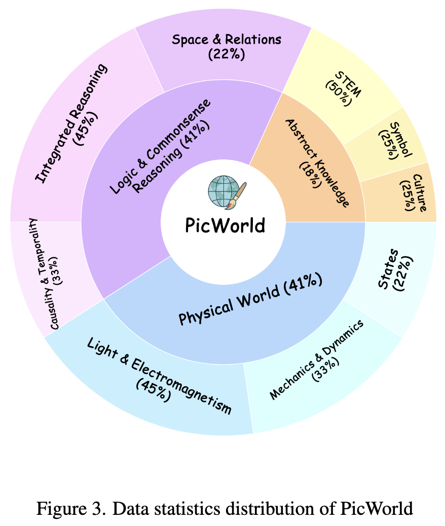 PicWorld,一个旨在评估文本到图像模型隐含推理能力的综合性基准。据我们所知,PicWorld是首个大规模、系统性的基准,专门用于评估模型对隐含世界知识(如遵循基本物理定律)和逻辑因果推理的理解。