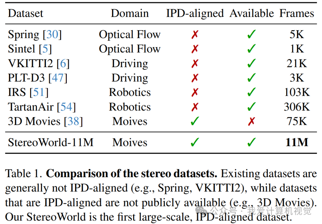 高质量的训练数据是成功的关键。现有的立体数据集要么是为自动驾驶等任务设计的,相机基线(可以理解为“眼间距”)过大,不符合人眼观看习惯;要么就是不公开。