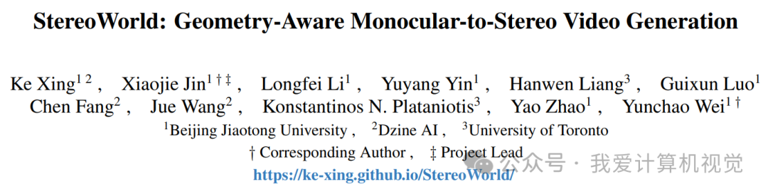 论文标题:StereoWorld: Geometry-Aware Monocular-to-Stereo Video Generation
