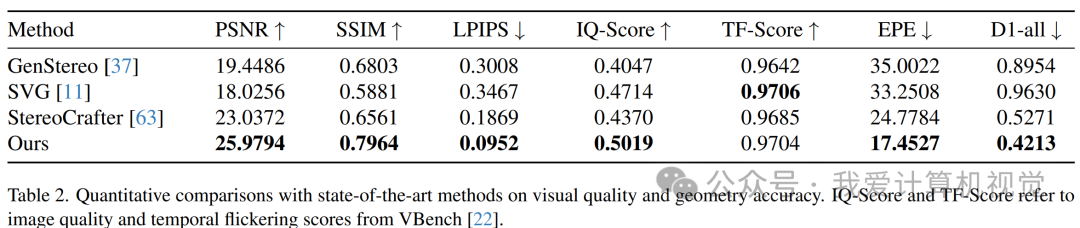 这个损失函数能够显式地引导模型去学习左右视图之间的几何对应关系,从而生成几何上一致的立体视频。