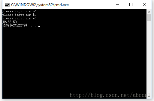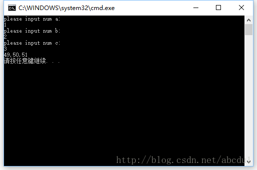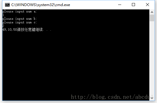 最后打印变量a,b,c的结果,整形形式,1、2、3。