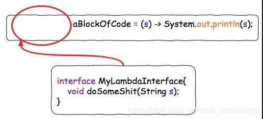 在Java 8里面,**所有的Lambda的类型都是一个接口,而Lambda表达式本身,也就是”那段代码“,需要是这个接口的实现。**这是我认为理解Lambda的一个关键所在,简而言之就是,**Lambda表达式本身就是一个接口的实现。**直接这样说可能还是有点让人困扰,我们继续看看例子。我们给上面的aBlockOfCode加上一个类型: