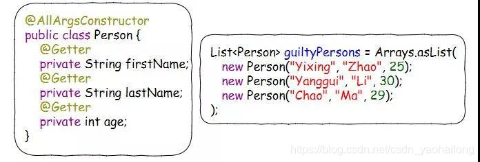 由于静态函数其实只是对List进行了一通操作,这里我们可以甩掉静态函数,直接使用stream()特性来完成。stream()的几个方法都是接受Predicate,Consumer等参数的*(java.util.stream (Java Platform SE 8 ))*。你理解了上面的内容,stream()这里就非常好理解了,并不需要多做解释。