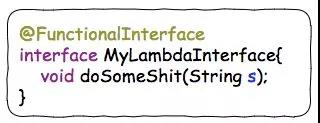 这种只有**一个接口函数需要被实现的接口类型,我们叫它”函数式接口“。**为了避免后来的人在这个接口中增加接口函数导致其有多个接口函数需要被实现,变成"非函数接口”,我们可以在这个上面加上一个声明@FunctionalInterface, 这样别人就无法在里面添加新的接口函数了: