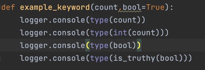 @keyword(types={'count': int, 'bool': bool}) @keyword(types=[int, bool]) -