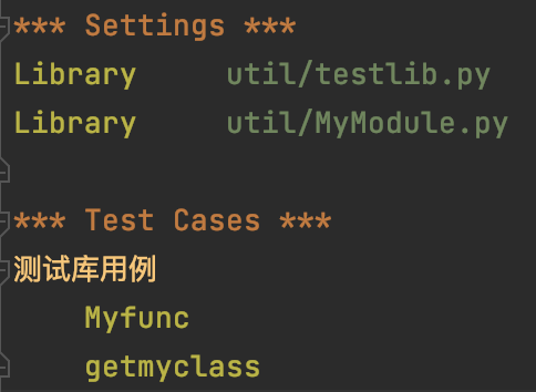 - 实现为类的测试库都可以接受参数. 这些参数在Setting表中指定, 跟在库名后面, 当Robot Framework创建测试库的实例时, 把这些参数传给构造函数.意思就是MyModule=MyModule(__init__方法的参数),之后使用MyModule.method。