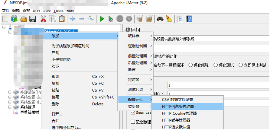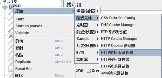 4.HTTP信息头管理,线程组上鼠标右击 – 添加 – 配置元件 – HTTP信息头管理