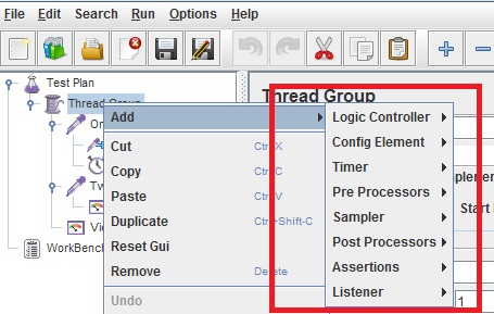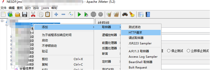 5.HTTP请求,线程组上鼠标右击 – 添加 – 取样器 – HTTP请求