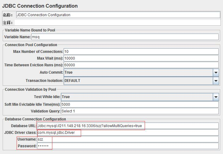 线程组添加 JDBC Connection Configuration (添加->配置元件-> JDBC Connection Configuration)用于配置Jmeter和Mysql的连接;