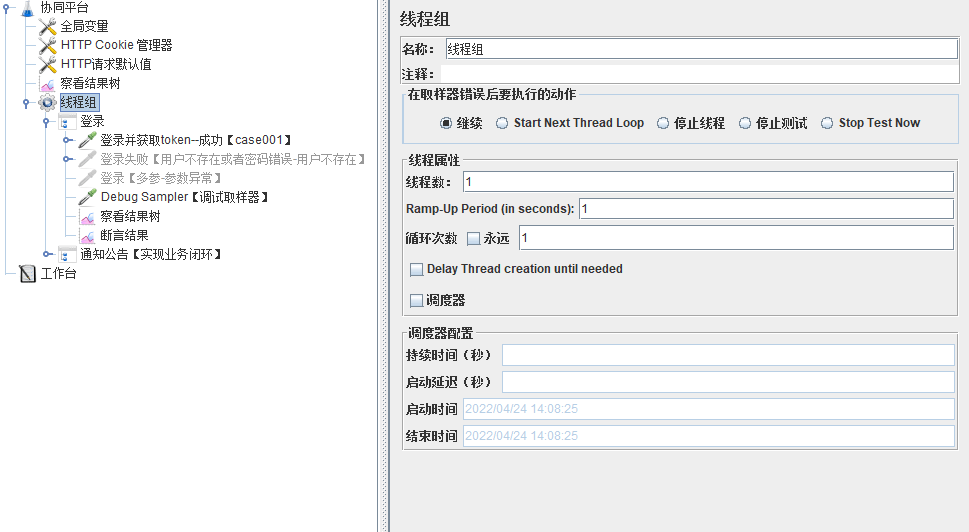 以上就是Jmeter的登录接口测试的一个正常流程,根据设计的接口测试用例增加请求测试
