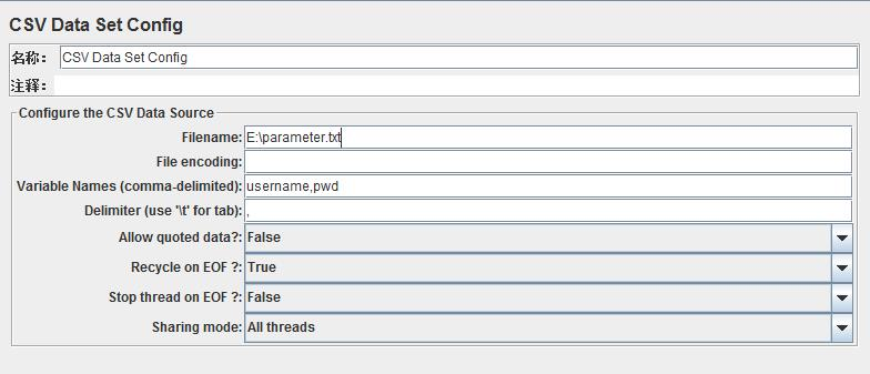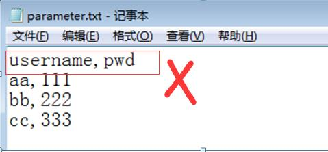 注意,Jmeter读取文件总的参数是从第一行就开始了的,千万不要犯下面的错误。