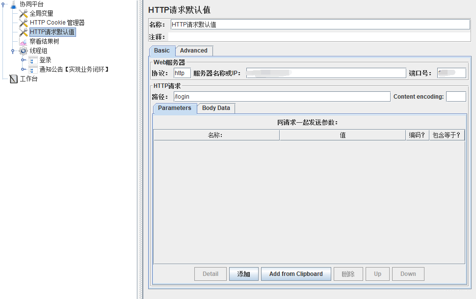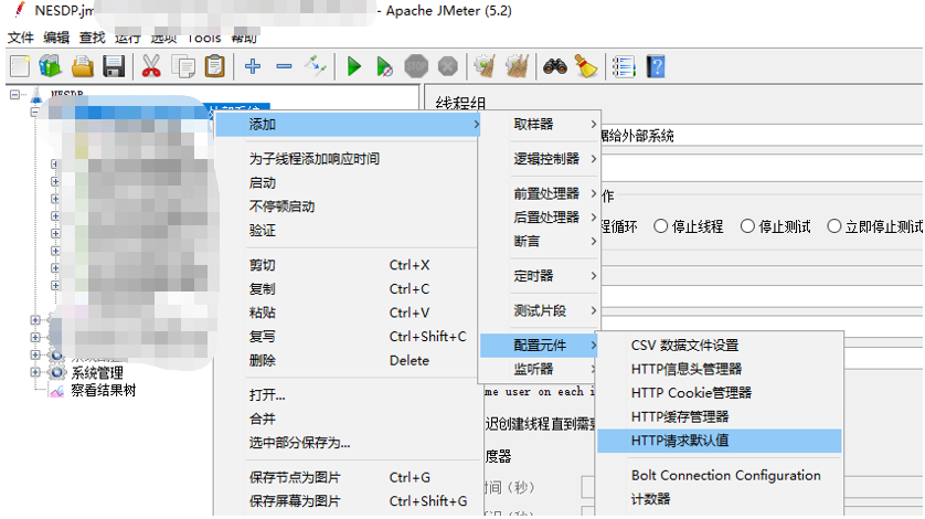 3.HTTP请求默认值,线程组上鼠标右击 – 添加 – 配置元件 – HTTP请求默认值