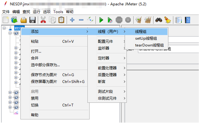 2.线程组,在测试计划上鼠标右击 – 添加 – 线程(用户)- 线程组。