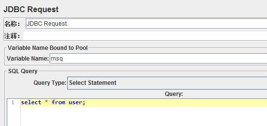 线程组添加JDBC Request(添加->Sampler-> JDBC Request) 用于写sql来操作Mysql;
