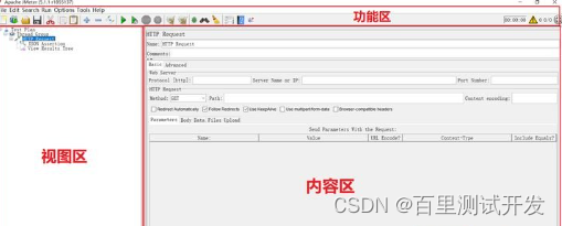 (一)测试计划:自带组件,jmeter所有的其他类型组件都是必须位于该组件下