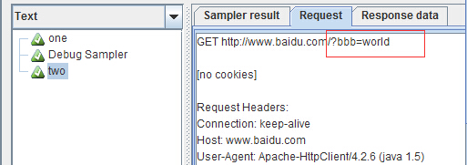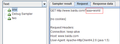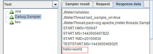 添加调试取样器-->运行测试-->通过查看结果树里面的 调试取样器 查看结果