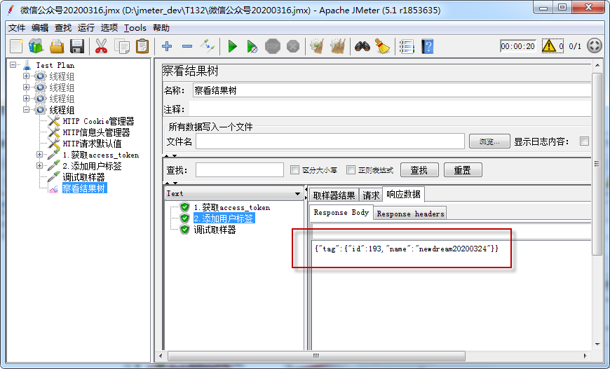 如图:{"tag":{"id":193,"name":"newdream20200324"}}