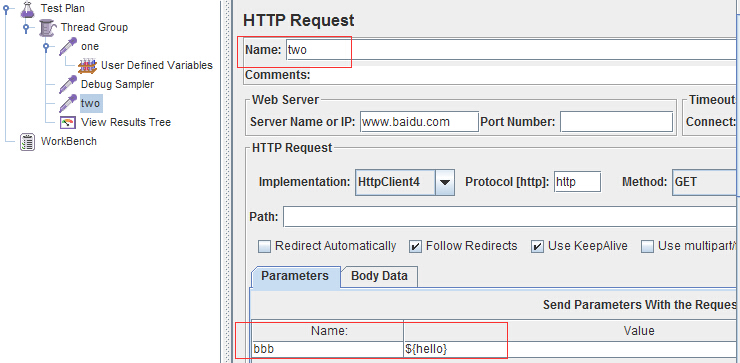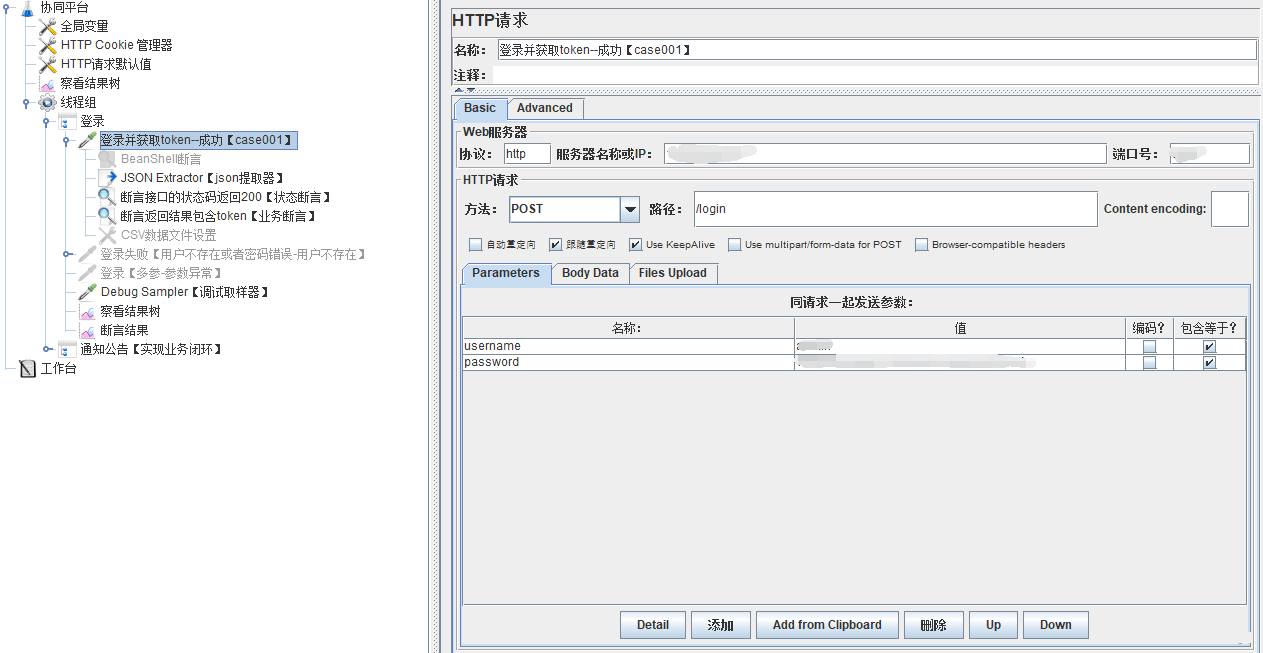 在请求中引用参数时应该是酱紫的:${username} ${pwd},用它们来顶替对应的参数值。