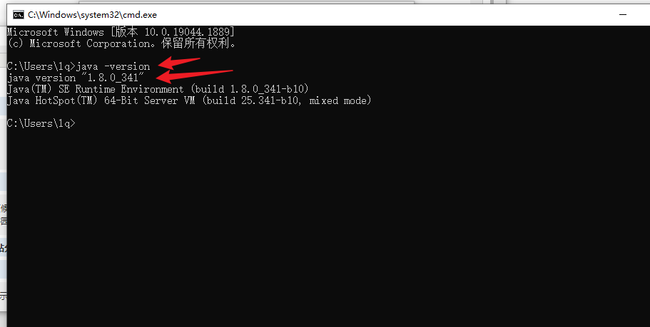 4、验证 java jdk的环境变量是否配置成功,打开cmd命令窗口输入java -version ,回车后展示java 版本号即可