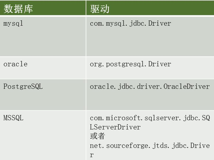 JDBC Driver class是固定的,Jmeter操作各类数据的Driver参考下图;