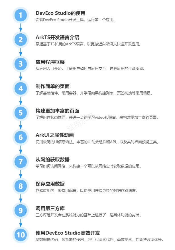 总之,通过这套课程可以帮助开发者快速掌握HarmonyOS的应用开发; 从应用入口开始,到与应用交互,让开发者深刻理解应用的生命周期。