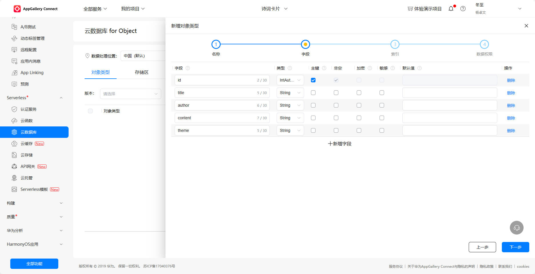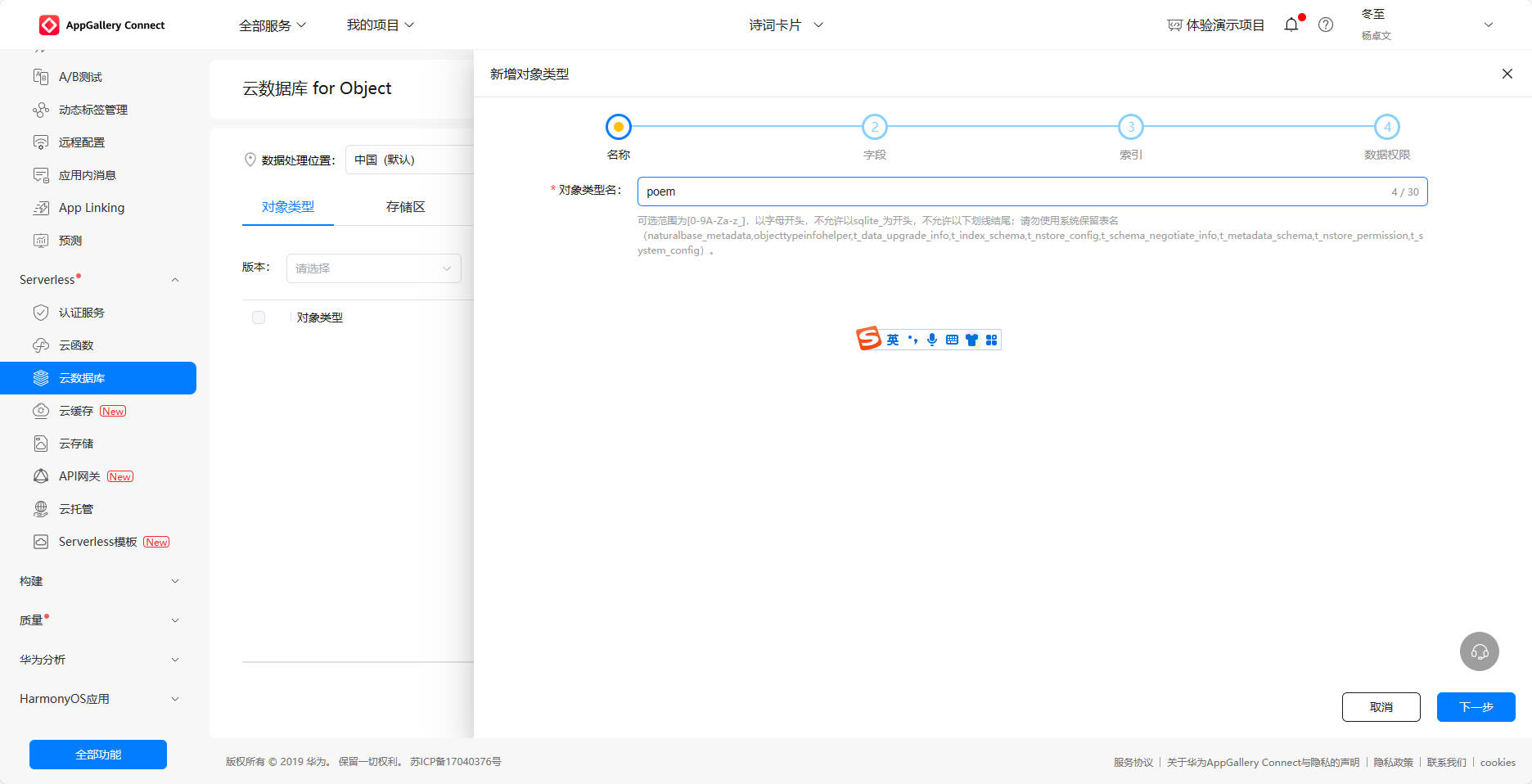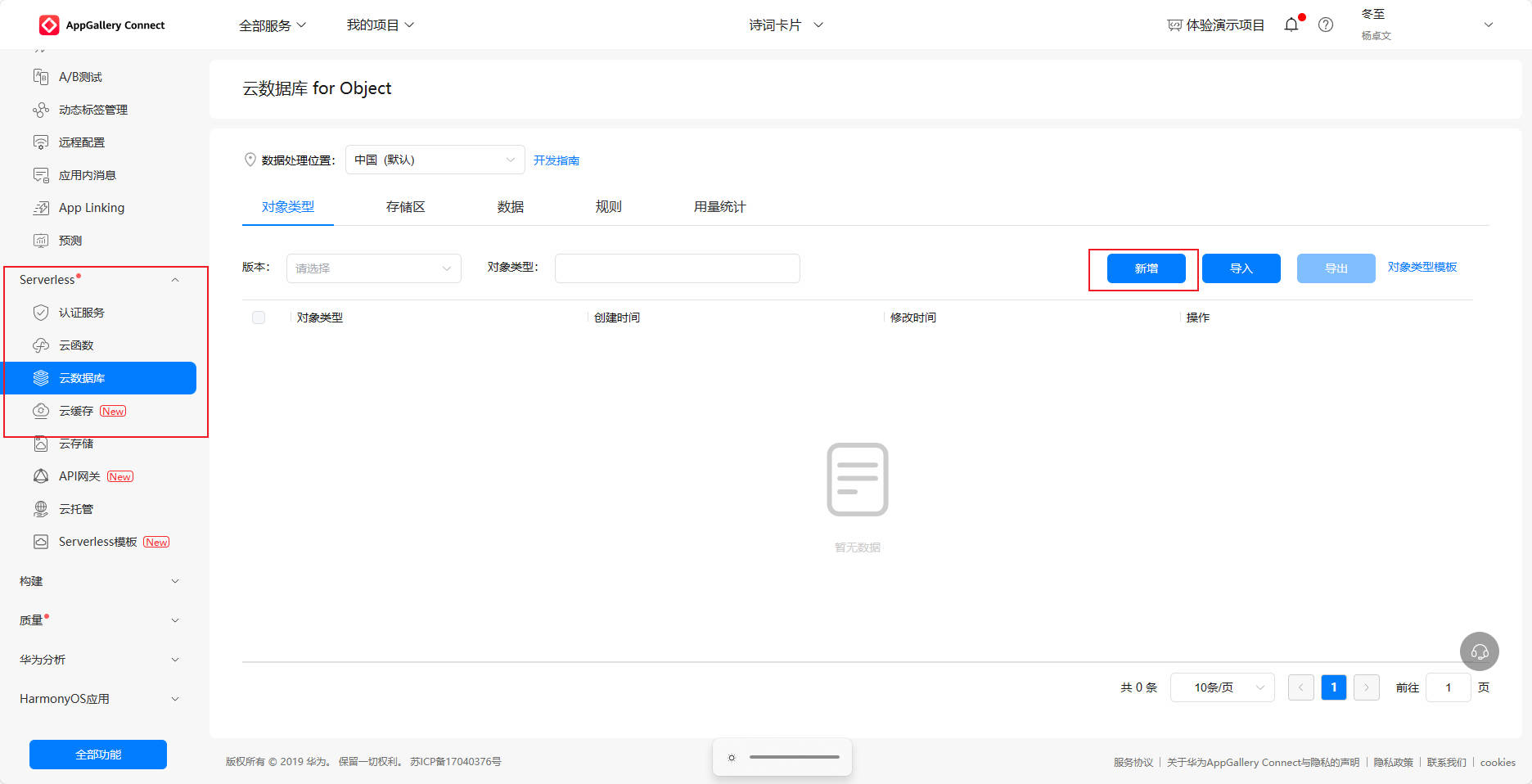 云函数get-potery的功能是根据传入的主题在云数据库中查询符合条件的数据,那么我们需要先创建数据对象,导入数据,这一部分工作可以在IDE里通过编写配置文件完成,也可以通过浏览器控制台完成,推荐后者,因为操作起来比较直观。