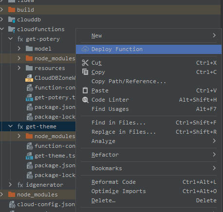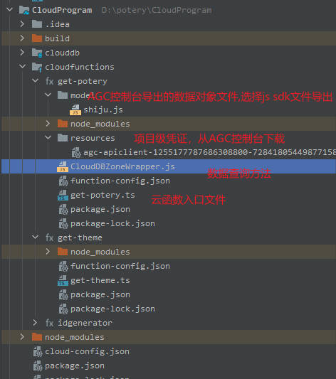 数据对象和数据导入完成后,可以开始编写第二个函数,既根据传入的主题查询云数据库。云函数调用云数据库参考官方文档https://developer.huawei.com/consumer/cn/doc/development/AppGallery-connect-Guides/query-clouddb-overview-0000001549142354,文档写的比较详细,因此不再赘述。 云函数结构如下