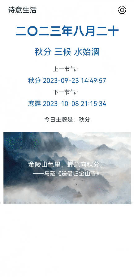 古诗词是中华传统文化的瑰宝,古人借诗词来言情、咏志、抒怀,古诗词记录了古人对于自然、社会、人文的观察与思考,也充满了真挚而多样的情感,有“每逢佳节倍思亲”的感慨孤独,有“但愿人长久,千里共婵娟”的真挚祝福,也有“爆竹声中一岁除,春风送暖入屠苏”的对于辞旧迎新的喜悦。每到季节更替、时节轮转、节日来临,总能唤起诗人对于人生的思考,造化的感悟,于是,诗意充盈在每一个平凡的日子之中,并融于我们的生活。而云服务和服务卡片又特别适合直观的展示诗词,于是有了根据节日或是节气,推荐展示符合主题的诗词的想法。