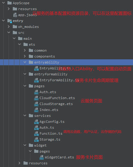 - 目前有关端云一体化的文档比较分散,向云函数和云数据库的文档在AGC里,服务卡片和元服务的文档在鸿蒙这边,如果有一个专区将这些文档放在一起,将学习路径优化一下可能会更好。