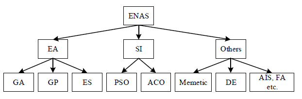 上测量结构A的性能。根据采用的优化算法,NAS算法可分为基于梯度的NAS算法,基于强化学习(RL)的NAS算法以及基于EC(Evolutionary Computing)的NAS算法(ENAS)。特别地,基于强化学习的算法即使在中等规模的数据集上,也需要上千张GPU卡,并且耗时数天。基于梯度的算法比RL算法更高效,但经常会找到病态的结构,并且基于梯度的算法需要构建supernet,这也需要专业的知识。ENAS算法利用EC技术解决NAS问题。EC是一种基于群体的计算方法,模拟种群的进化过程,来解决具有挑战性的优化问题。