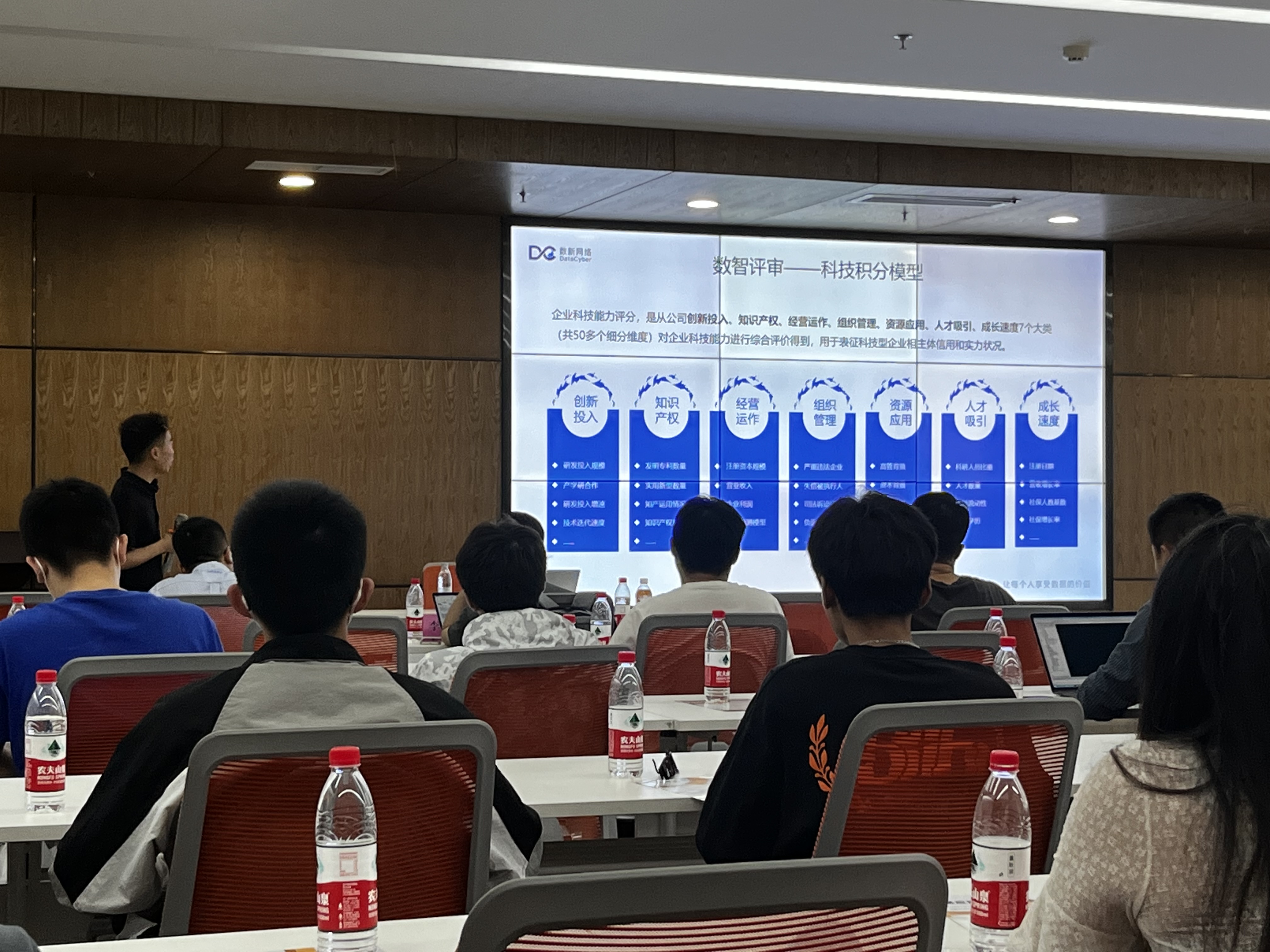 最后,由数新网络解决方案架构师阳苍林作《科技积分贷方案》的主题分享。阳苍林指出,科技型中小企业因其规模小、资产少、风险大等众多主、客观原因的存在,在融资上存在较大难题。其中,科技能力评估难、数据少且分散、营销获客难是科技型企业融资的主要难点,基于此,数新网络提出“科技积分贷”,为科技型企业数智融资问题提供解决方案。 什么是科技积分贷?阳苍林从三个不同层面进行了详细解读。在数智营销层面,通过银行客户标签体系建设维度,降低获客成本,拓宽获客渠道;在数智评审层面,通过构建科技积分模型,从公司的创新投入、知识产权、经营运作、组织管理、资源应用、人才吸引和成长速度七大维度对企业科技能力进行综合评价;在数智检测层面,从源数据到应用层,实现完整的智能风控平台技术架构。总之,数新网络同时构建科技主题库、科技积分模型、智能风控平台三大数据平台,帮助客户完成智慧融资与智慧办贷等业务应用,实现科技企业、地方政府和银行机构之间的合作共赢。