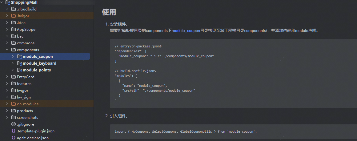 - 下载组件源码,根据README中的说明,将组件包配置在自己的工程中。