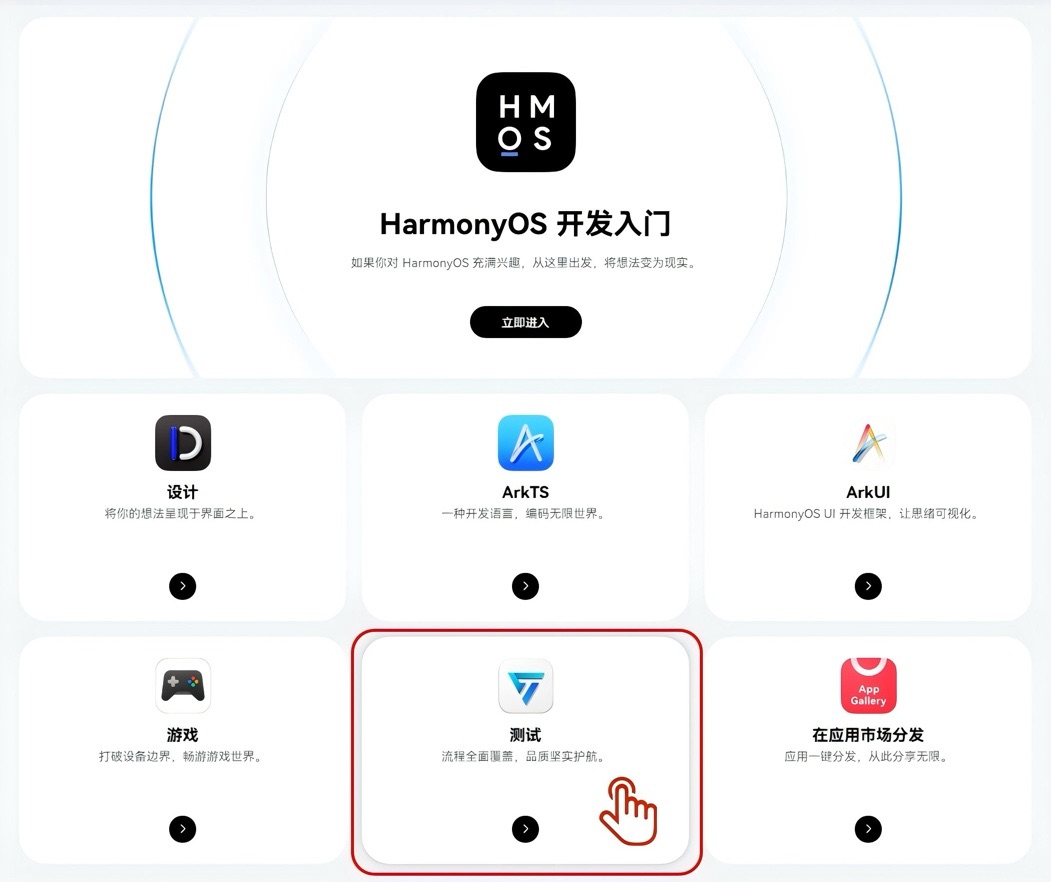 如果你对HarmonyOS充满兴趣,欢迎访问官网“HarmonyOS开发入门”从设计、开发到测试、发布,将想法变为现实。期待全流程覆盖的测试专题页能成为开发者提升应用质量的最佳阶梯,在体验为王的时代,相信这套测试服务入门专题的及时推出,能成为开发者不可或缺的竞争力。