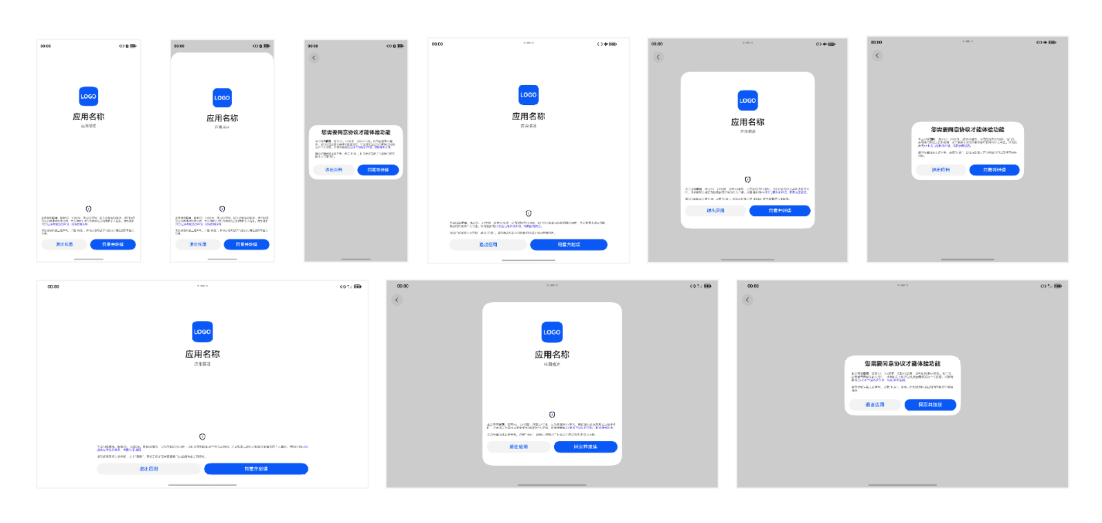 本组件提供了多种类型的隐私弹窗封装,支持配置标题、应用信息、隐私政策描述及样式,同时支持为不同文本配置跳转链接或点击事件。已实现双折叠和阔折叠、华为平板适配。