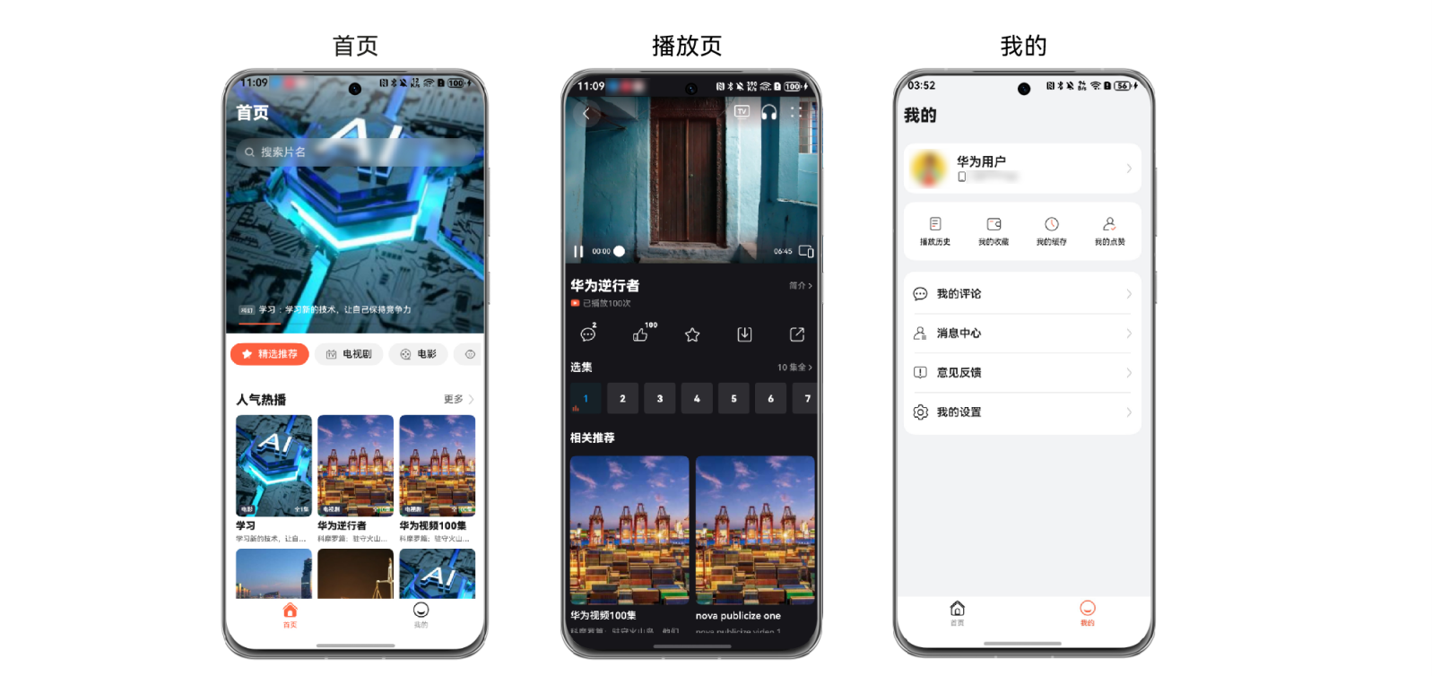 本模板为视频类应用提供了常用功能的开发样例,模板主要分首页、我的两个模块。本模板已集成华为账号、广告、微信登录等服务,只需做少量配置和定制即可快速实现华为账号的登录、视频播放等功能。