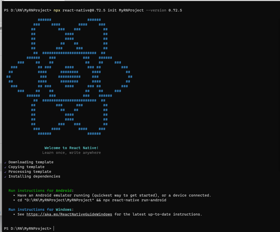 npx react-native@0.72.5 init MyRNProject --version 0.72.5