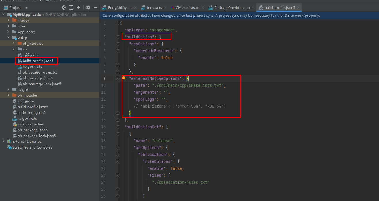 打开 MyRNApplication\entry\src\main\ets\entryability\EntryAbility.ets,替换为如下代码。