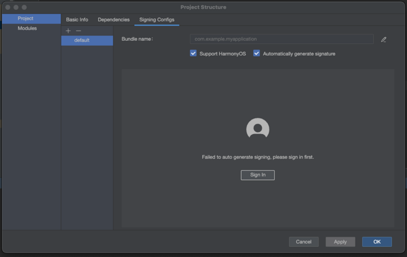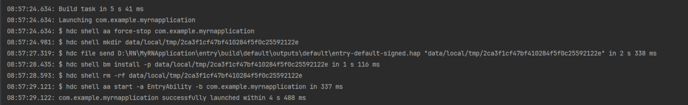 使用 DevEco Studio 运行 MyRNApplication 工程。如果运行按钮灰色不可用,需要先执行file->sync and refresh project。