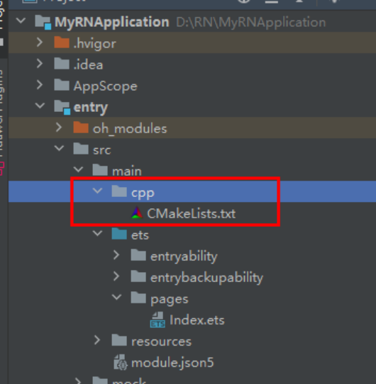 5.在 MyRNApplication\entry\src\main\ets 目录下新增 RNPackagesFactory.ets, 复制如下代码。