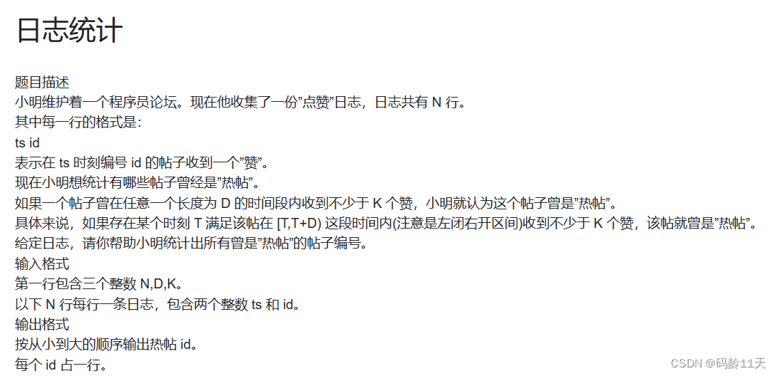P1373 - [蓝桥杯2018初赛]日志统计 - New Online Judge (ecustacm.cn)