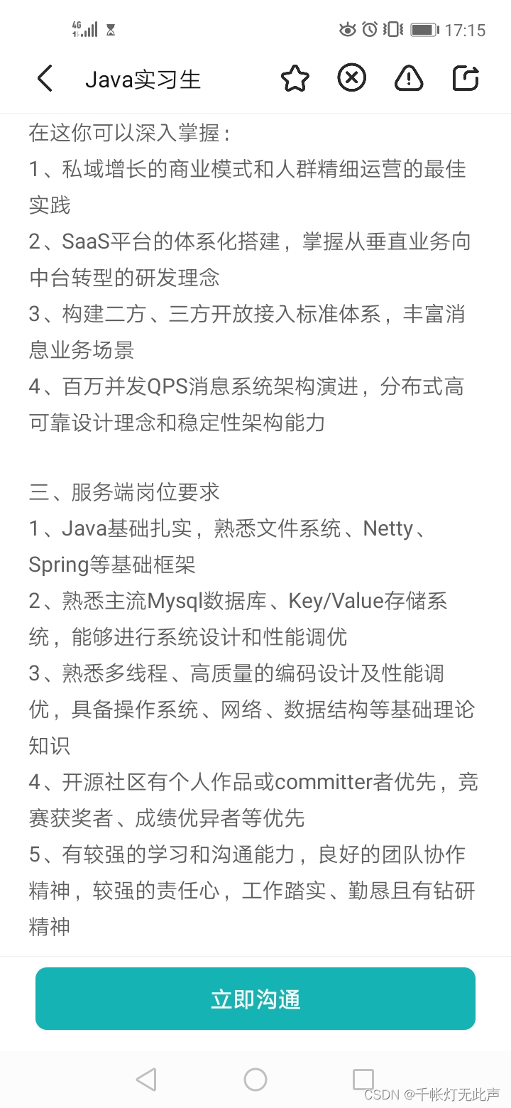 文章总结了2023年广州和深圳互联网公司的招聘趋势,强调基本技术要求,包括数据库管理(SQL/MySQL,Redis),后端开发(Java,C++,Python),框架(Spring),数据结构,算法,网络协议,Linux熟悉度,代码管理(Git)和分布式系统知识。加分项包括实际项目经验,编程竞赛,开源贡献,前端技能和良好的英语沟通能力。