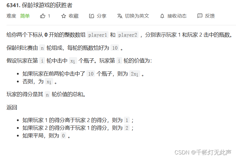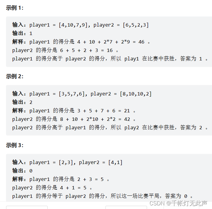 6341. 保龄球游戏的获胜者 - 力扣(LeetCode)