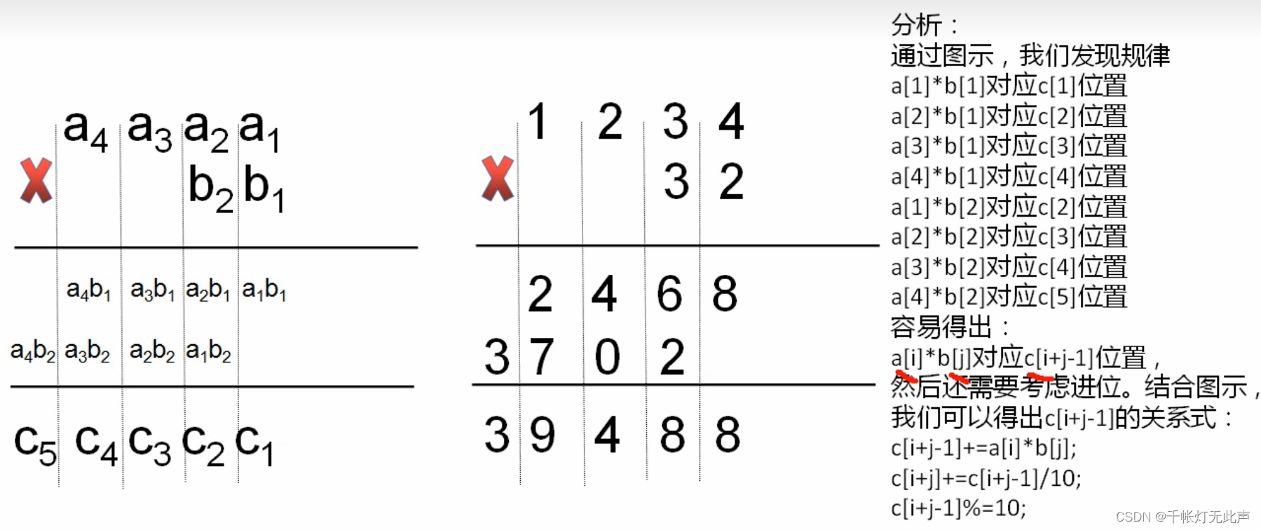 利用字符串模拟数字,再运用类似数学中,竖式的形式,一位一位地计算