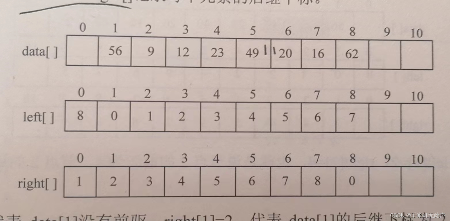 👇需要注意的是,静态双向链表初始化时,习惯性初始化为循环链表,头节点和尾节点连在一起